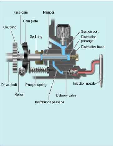 Satu plunger digunakan untuk mengirim bahan bakar bertekanan tinggi ke setiap injection nozzle dengan gerakan resiprokasi dengan berotasi.